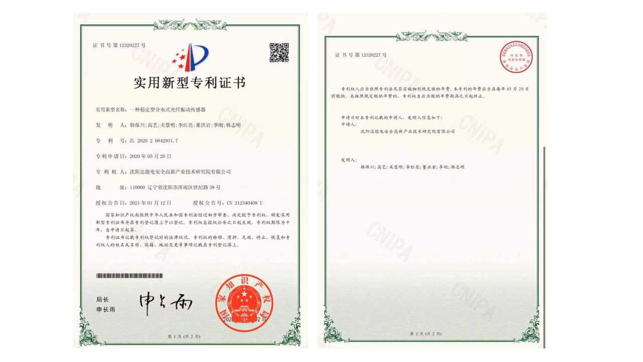 1月12日,沈阳galaxy银河电安全高新产业技术研究院(以下简称研究院)荣获由国家知识产权局颁发的实用新型专利证书—《一种稳定型分布式光纤振动传感器》,专利号ZL 2020 2 0842931.7。沈阳galaxy银河电安全高新产业技术研究院是galaxy银河电气旗下研发机构,是公司重点打造的创新研发机构。2020年度,galaxy银河研究院累计荣获5项实用新型专利证书、7项软件著作权证书,这是galaxy银河专注研发创新,加速科技成果转化,推动知识产权战略实施的有效成果。